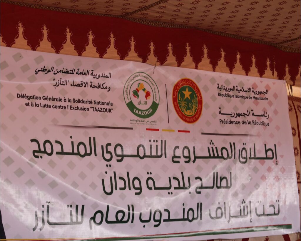 انسجامًا مع توجيهات فخامة رئيس الجمهورية، السيد محمد ولد الشيخ الغزواني، الرامية إلى تعزيز التضامن الوطني، ومكافحة الإقصاء، وتمكين الفئات الهشة، وتسريع وتيرة التنمية في مدائن التراث، أشرف المندوب العام للتضامن الوطني ومكافحة الإقصاء، السيد سيدي مولاي الزين، رفقة والي آدرار السيد عبد الله ولد محمد محمود، اليوم الأربعاء بمدينة وادان، على إطلاق حزمة من المشاريع التنموية والاجتماعية التي تنفذها المندوبية العامة لـ“التآزر” لصالح ساكنة المدينة، وذلك في إطار الفعاليات المواكبة لمهرجان مدائن التراث.