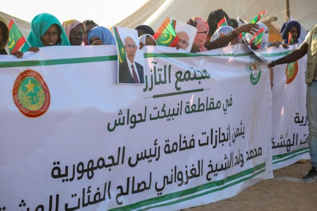 شهدت مدينة انبيكت لحواش، مساء اليوم السبت، تنظيم استقبال شعبي كبير لفخامة رئيس الجمهورية السيد محمد ولد الشيخ الغزواني، حيث احتشد مجتمع “التآزر” على طول الطريق لمشاركة هذه الزيارة الرسمية. وأكد المجتمع من خلال هذا التجمع دعمه وامتنانه للجهود الوطنية المبذولة وفق توجيهات فخامته، الرامية إلى تمكين الفئات الهشة وتحسين ظروف عيش المواطنين، مؤكدين تقديرهم للدور الحيوي الذي تضطلع به المندوبية العامة للتضامن الوطني ومكافحة الإقصاء “التآزر” في خدمة المواطنين وتعزيز التضامن الاجتماعي في مختلف مناطق الوطن.